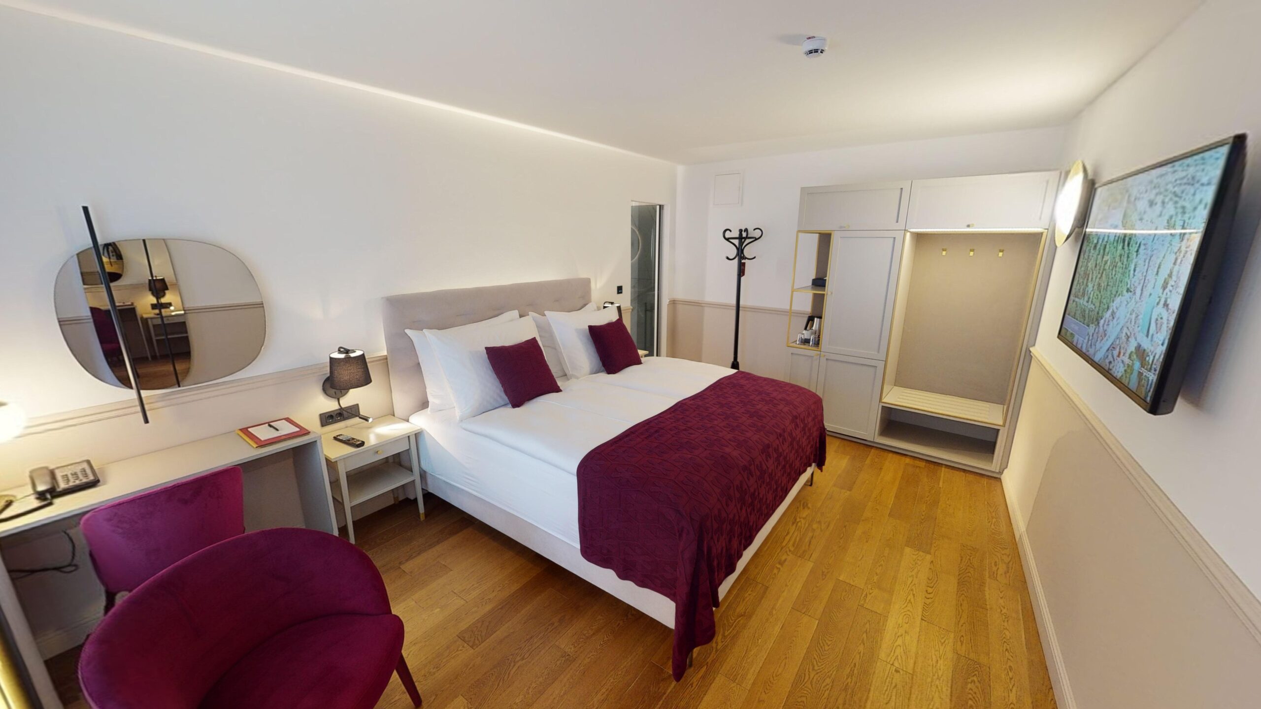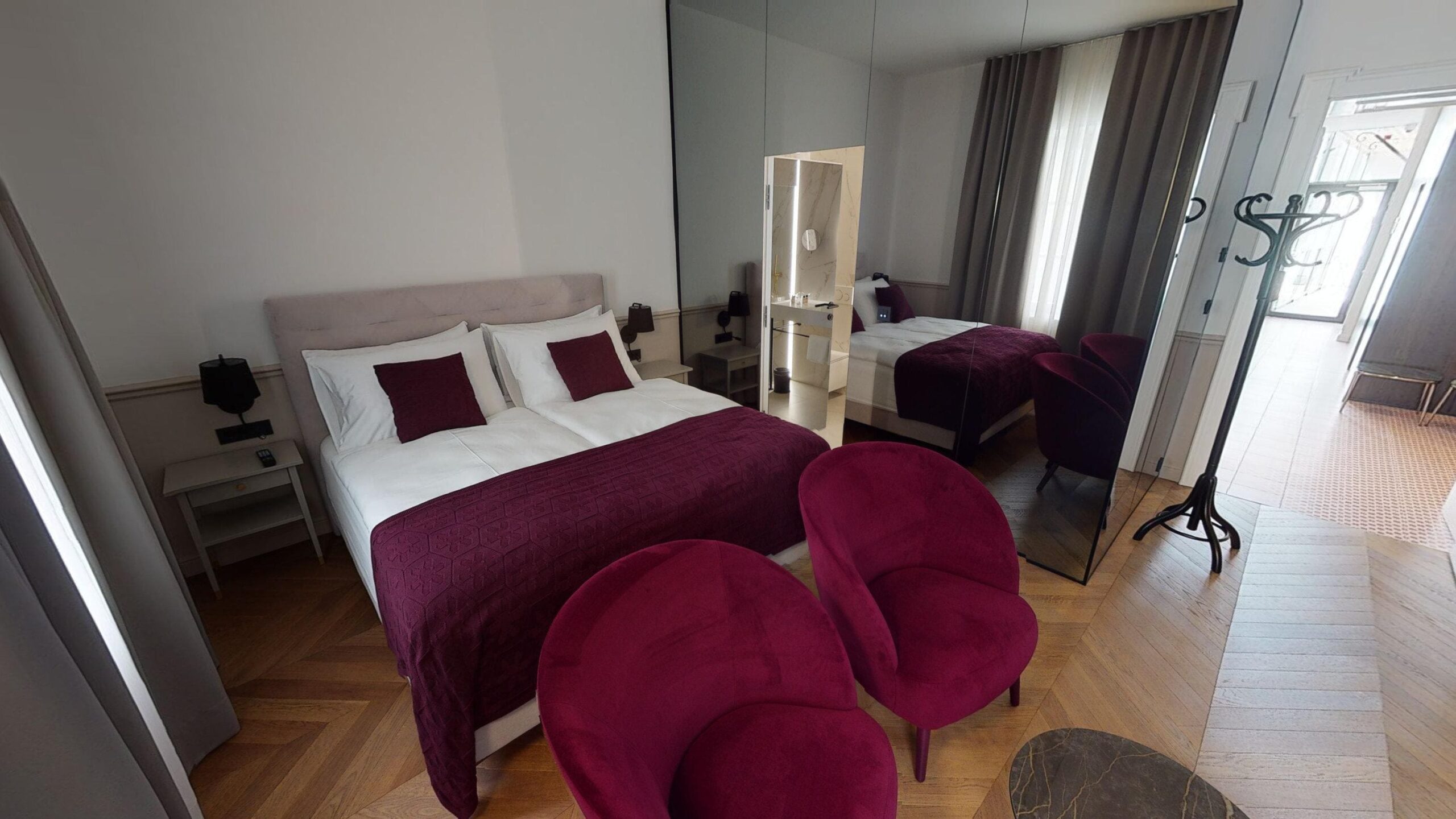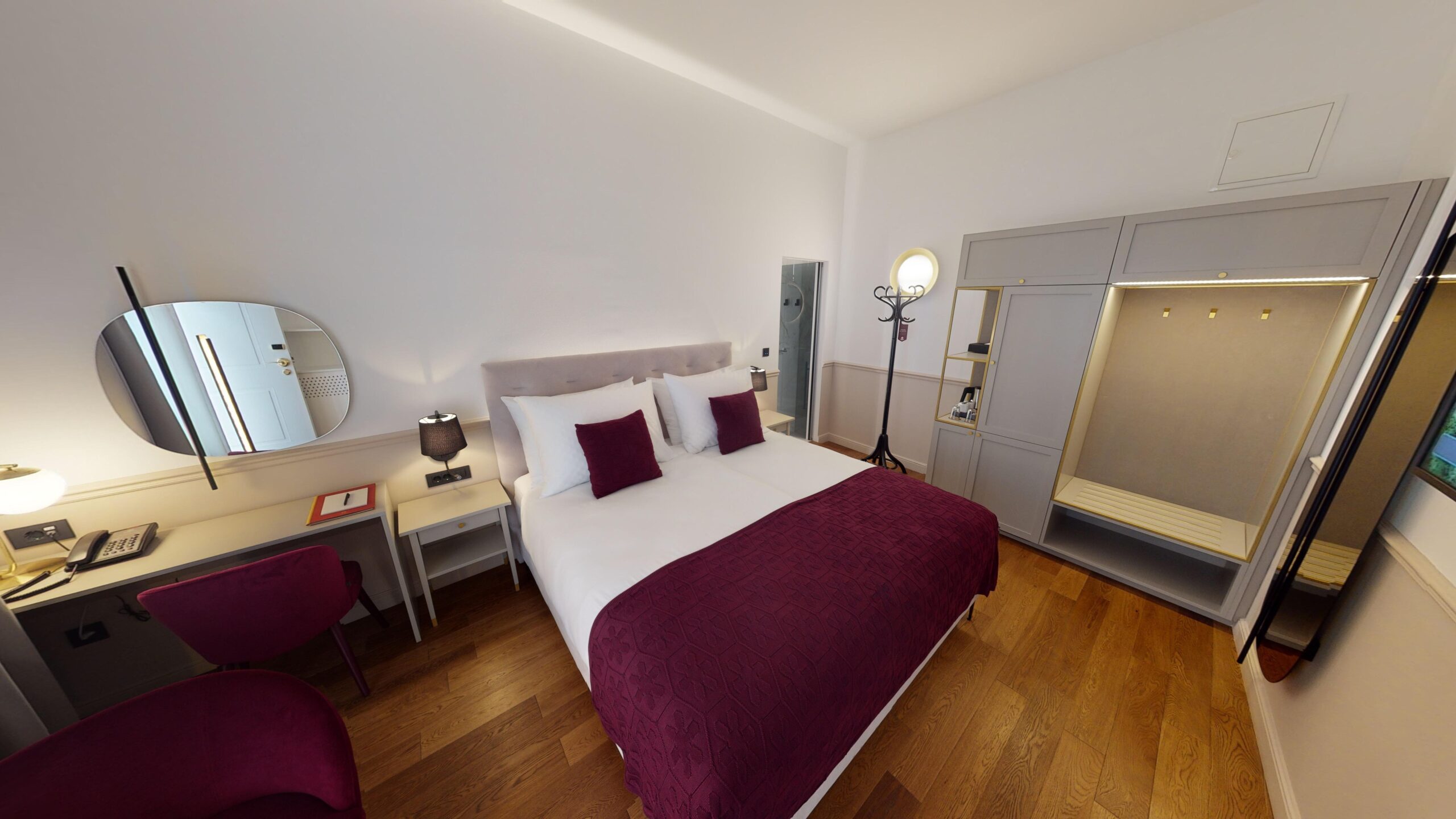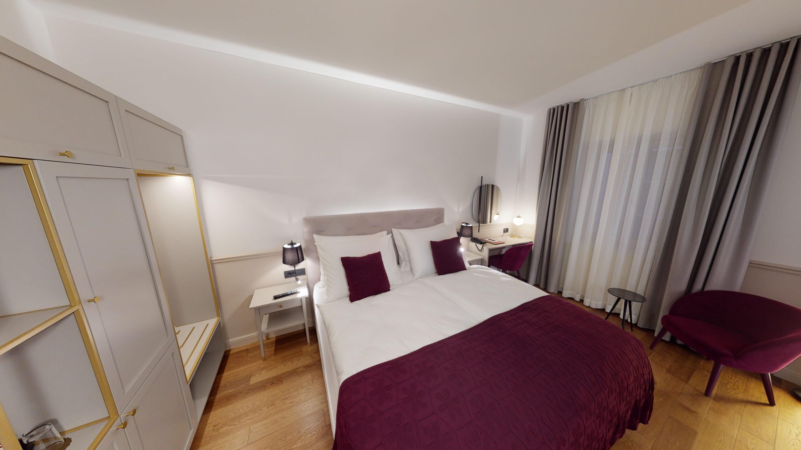 Hotel Heritage Ljubljana – luksuzna soba predstavljena s 360-stopinjskim virtualnim sprehodom.
