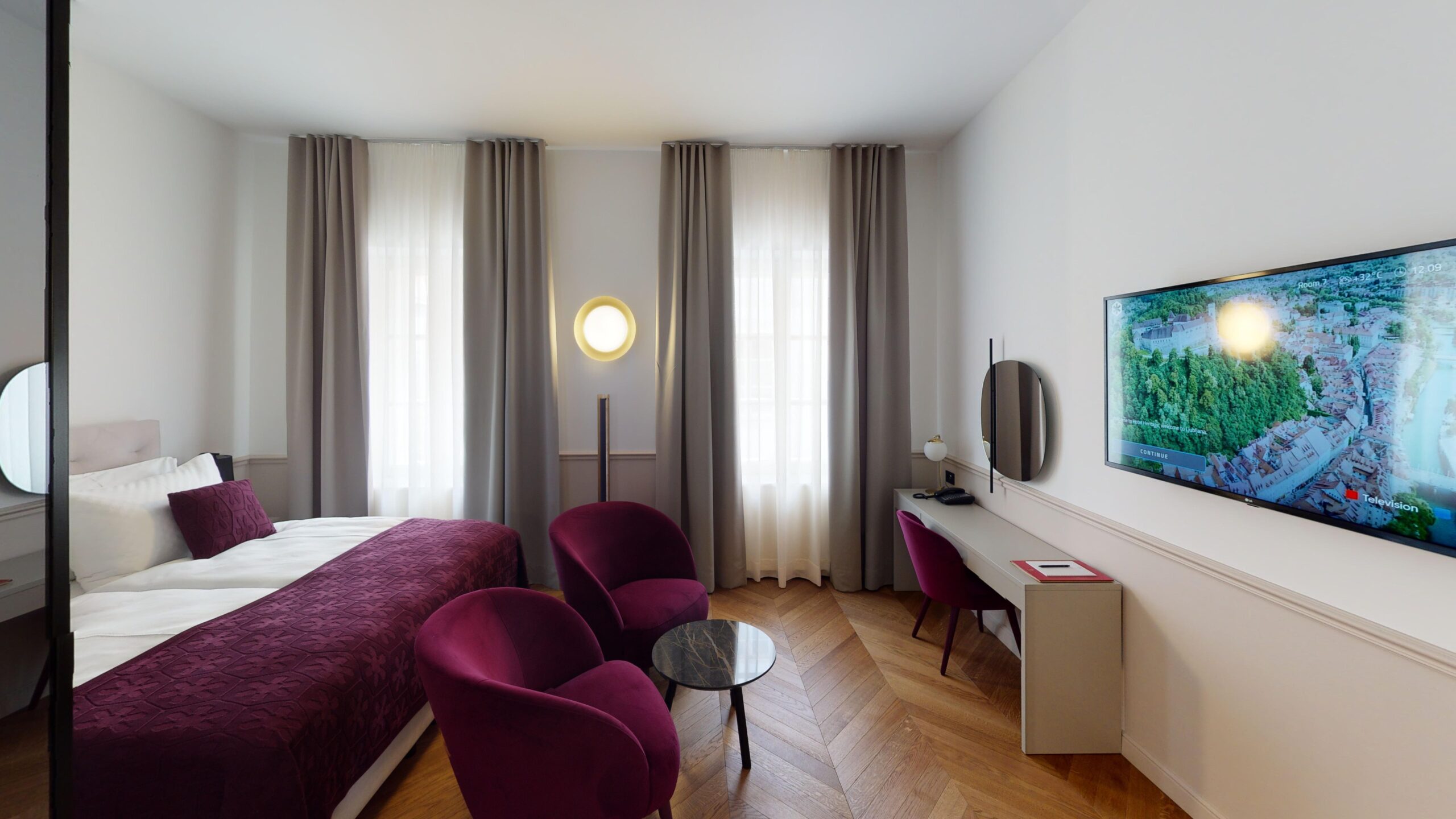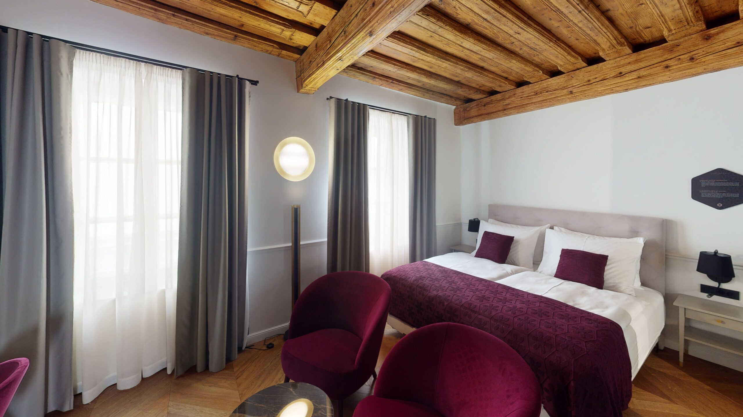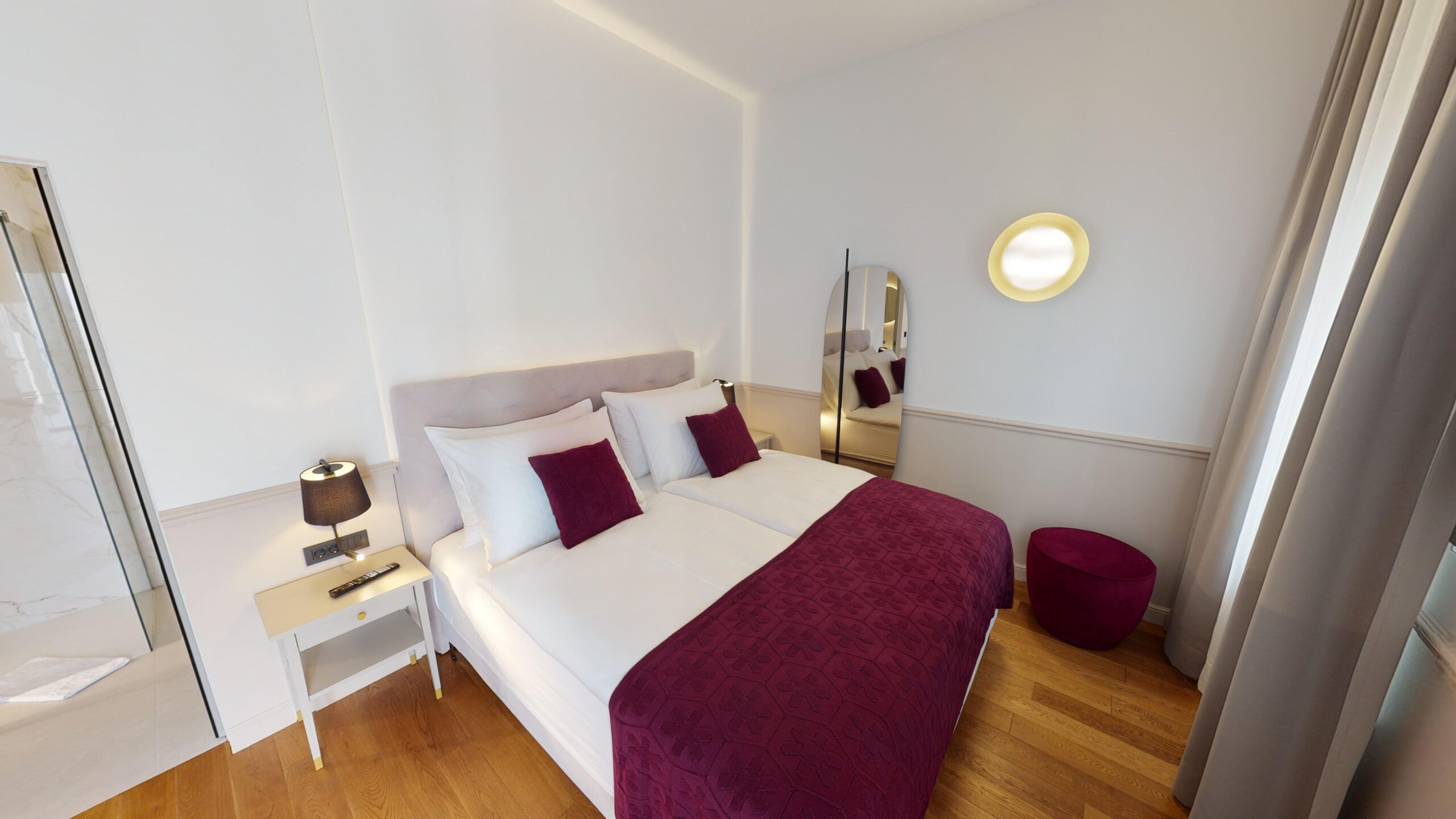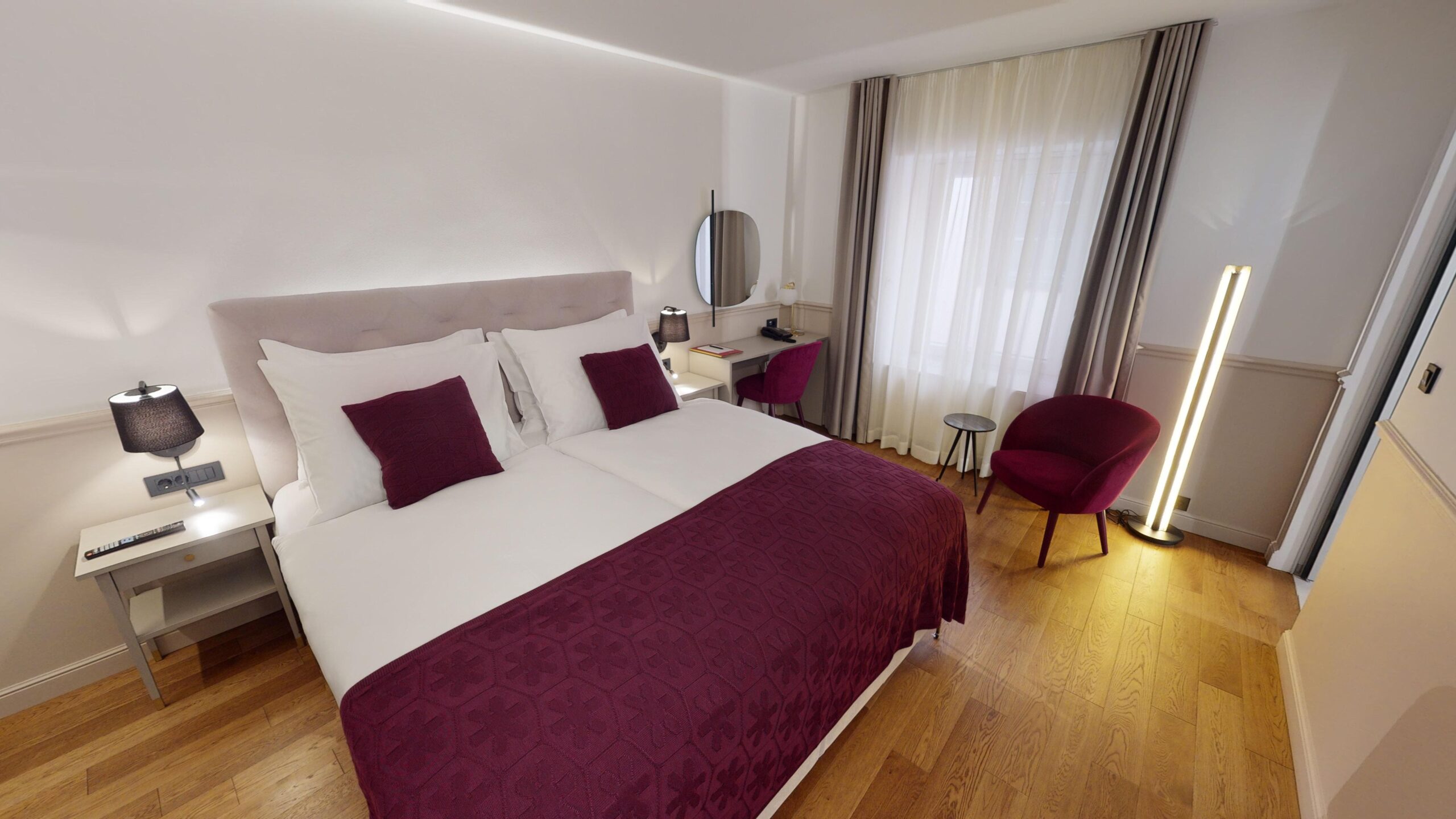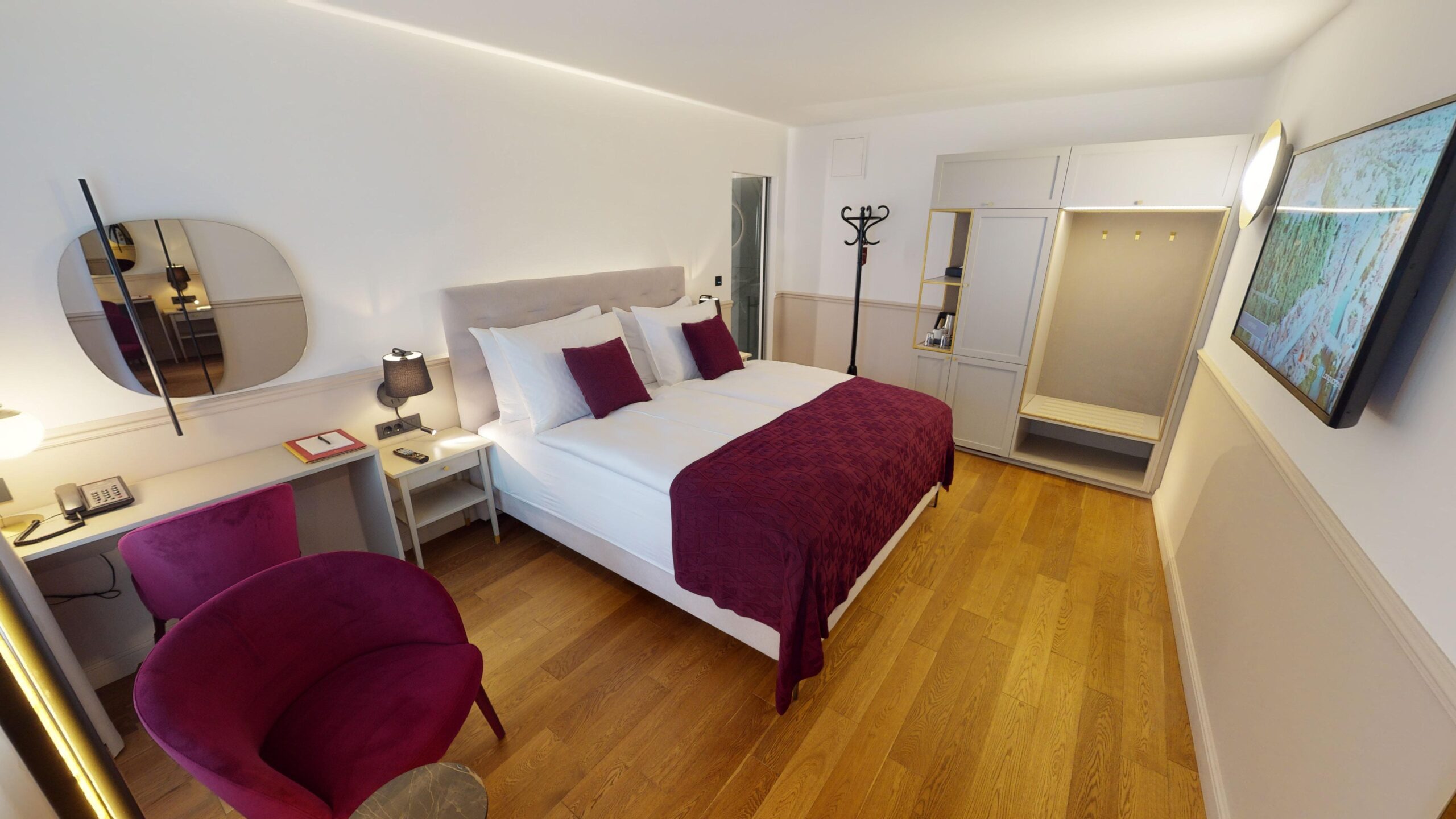 Hotel Heritage Ljubljana – luksuzna soba predstavljena s 360-stopinjskim virtualnim sprehodom.