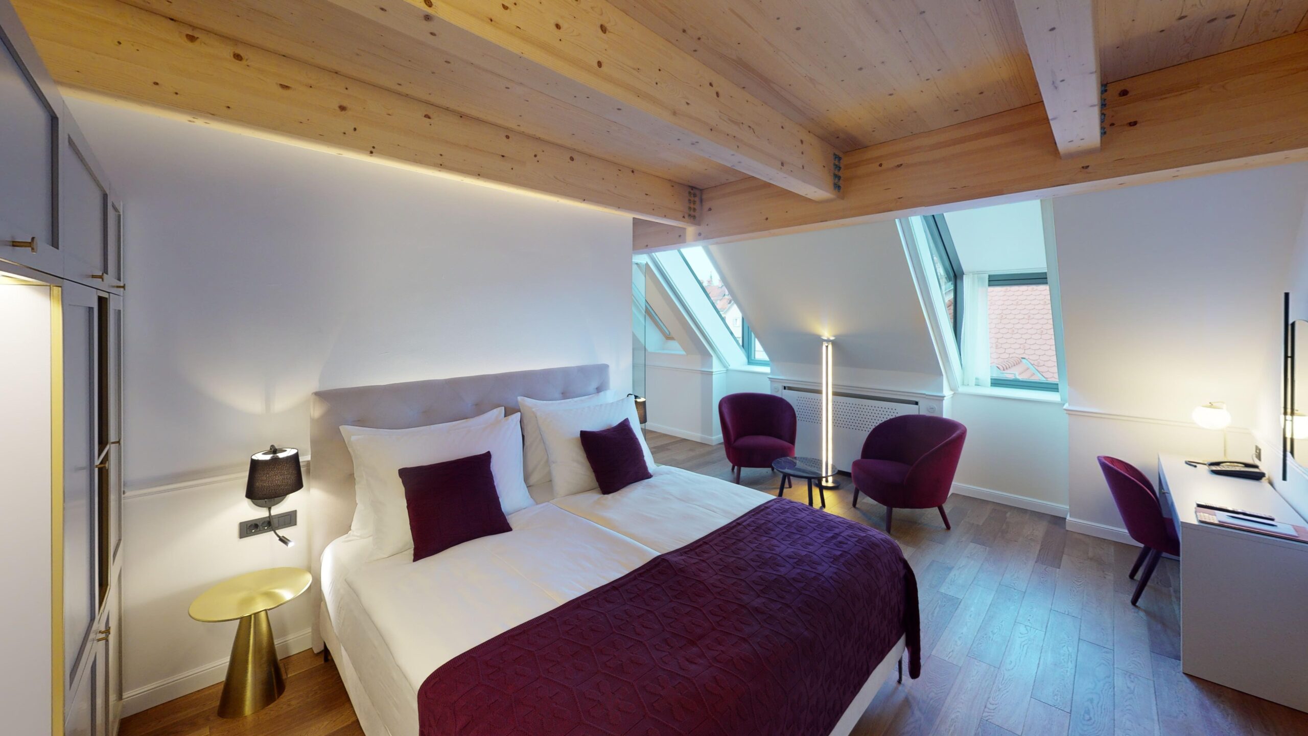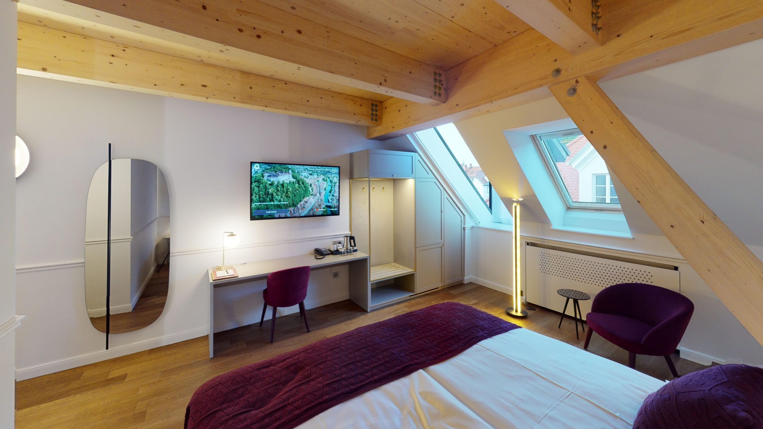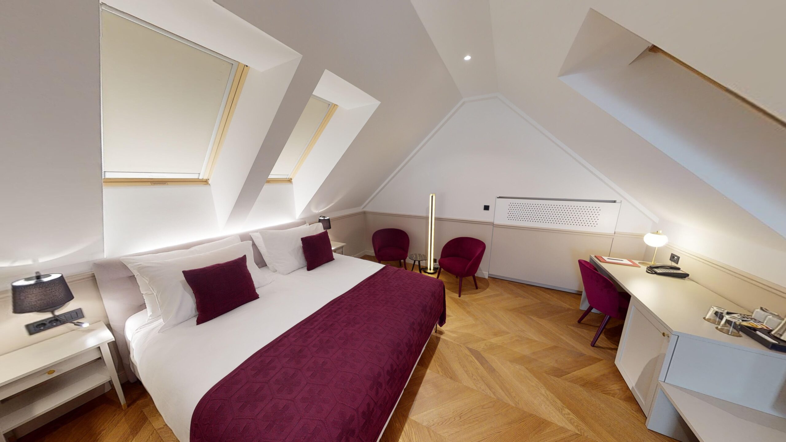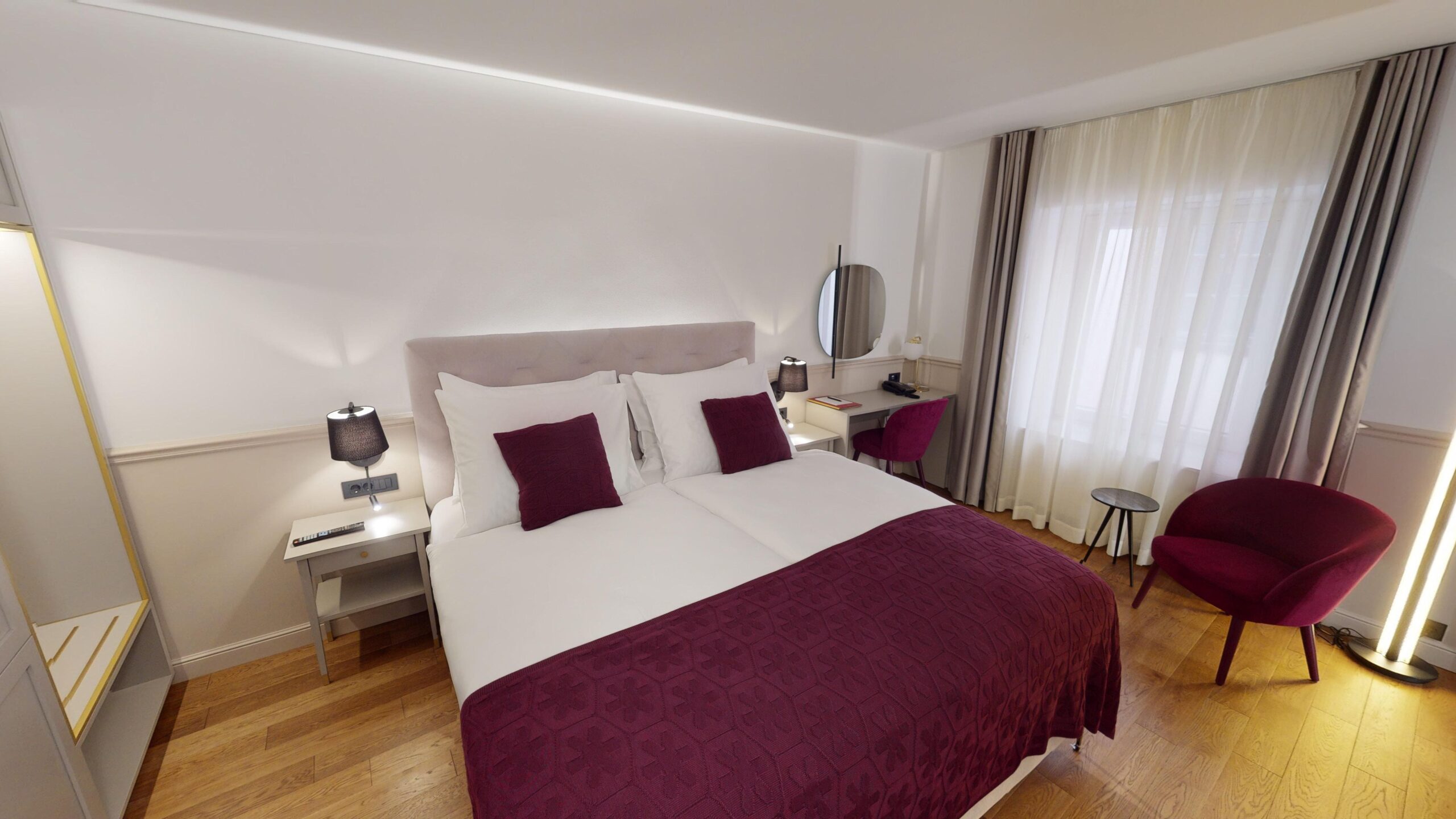 Hotel Heritage Ljubljana – luksuzna soba predstavljena s 360-stopinjskim virtualnim sprehodom.