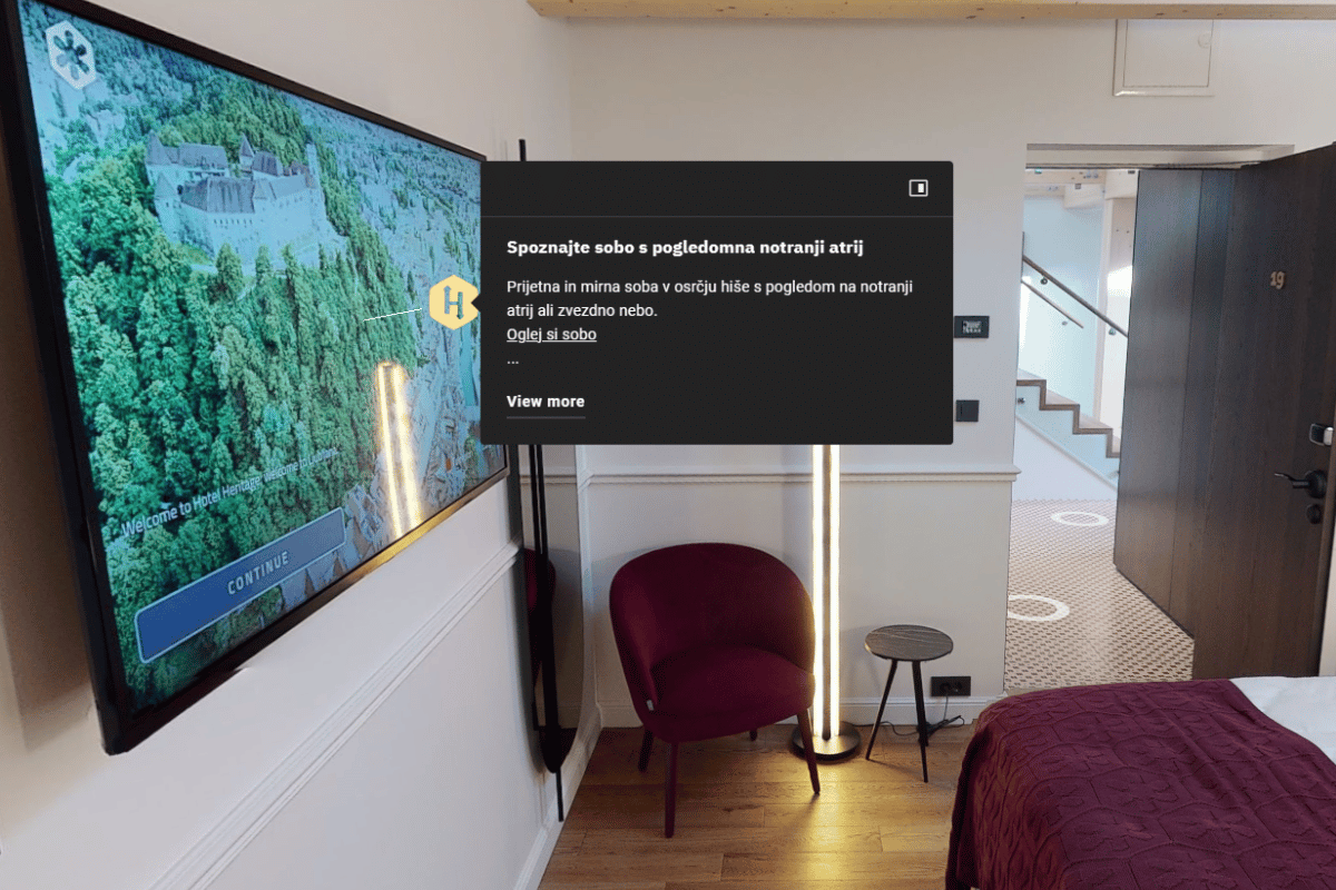 Interaktivni 3D ogled luksuznih sob, ki navdušijo in olajšajo odločitev za rezervacijo.